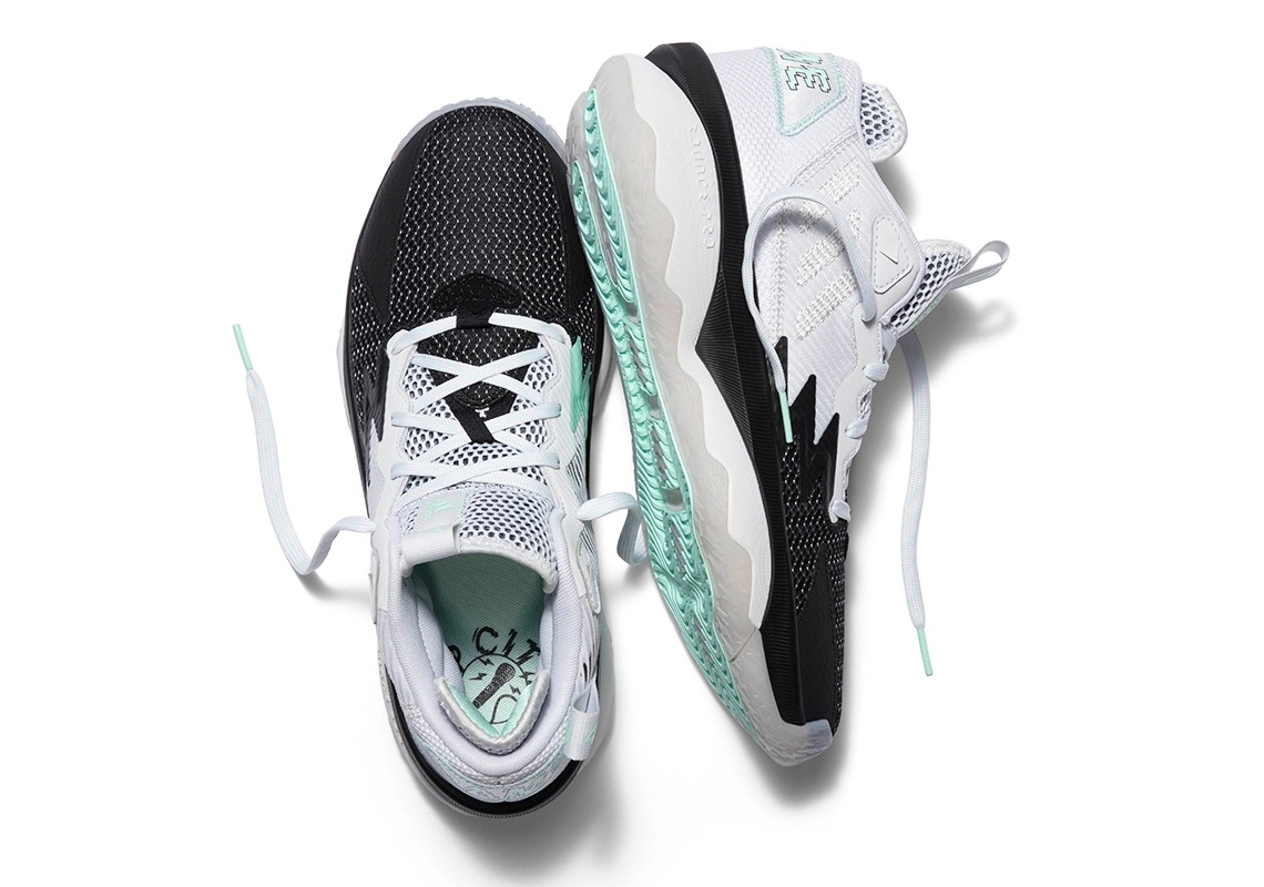 Chaque version a sa petite déclinaison perso qu’on retrouve retranscrite sur une languette au niveau de la partie latérale du talon. À commencer par la « 4th QT K.O. » en rapport au côté « clutch » de Damian Lillard, en blanc, noir et bleu ciel. Viennent ensuite la « Dame Time », aux couleurs de Portland, en blanc, noir et rouge, et la « Respect my name », la plus « flashy », en bleu turquoise et rose.