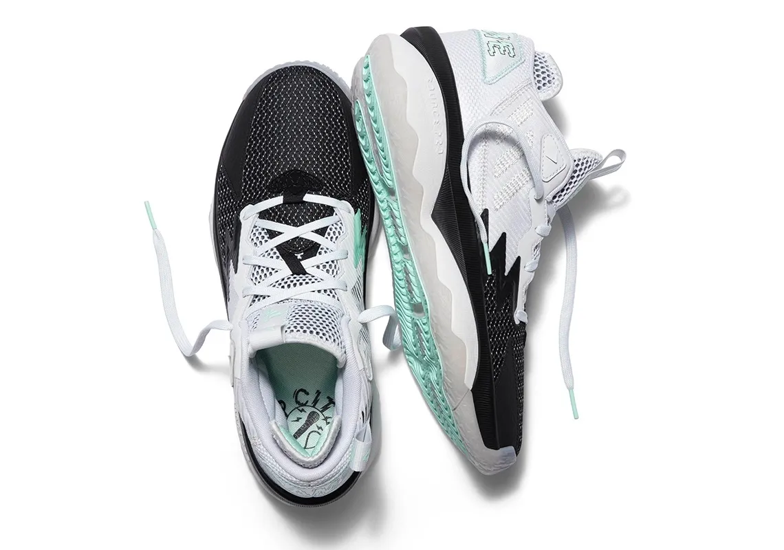 Chaque version a sa petite déclinaison perso qu'on retrouve retranscrite sur une languette au niveau de la partie latérale du talon. À commencer par la « 4th QT K.O. » en rapport au côté « clutch » de Damian Lillard, en blanc, noir et bleu ciel. Viennent ensuite la « Dame Time », aux couleurs de Portland, en blanc, noir et rouge, et la « Respect my name », la plus « flashy », en bleu turquoise et rose.