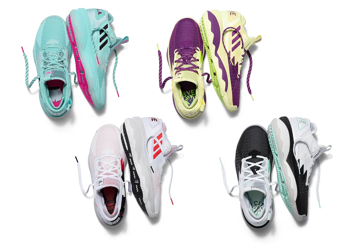 La huitième chaussure signature de Damian Lillard signée par adidas confirme son arrivée en grande pompe sur le marché de la sneaker. Après avoir dévoilé le premier coloris « Bold Purple/Electric Yellow » dont la sortie est prévue le 19 décembre, trois nouvelles Dame 8 sont déjà prêtes pour début 2022 !