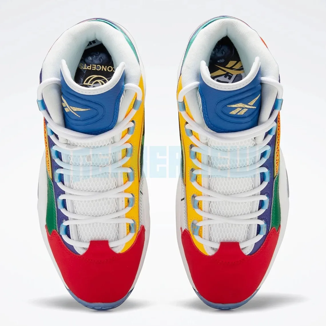 La « Question » est déjà de retour à l'occasion d'une collaboration avec « Concepts » pour présenter coloris multicolore détonnant qui fait honneur à la Draft de 1996, parmi les plus exceptionnelles de l'histoire, avec Allen Iverson comme premier choix.