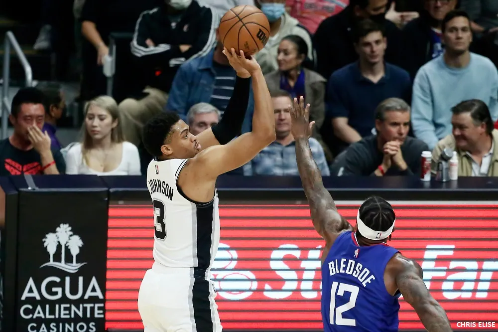 Avec 46.7 % de réussite à 3-pts, l'ailier texan est désormais le deuxième shooteur le plus adroit de la ligue, derrière Cody Martin (50.7 %). Certes, son volume est encore loin des grands shooteurs (il tente sa chance 3.2 fois par match), mais pour les Spurs, avoir une telle arme, c'est précieux.