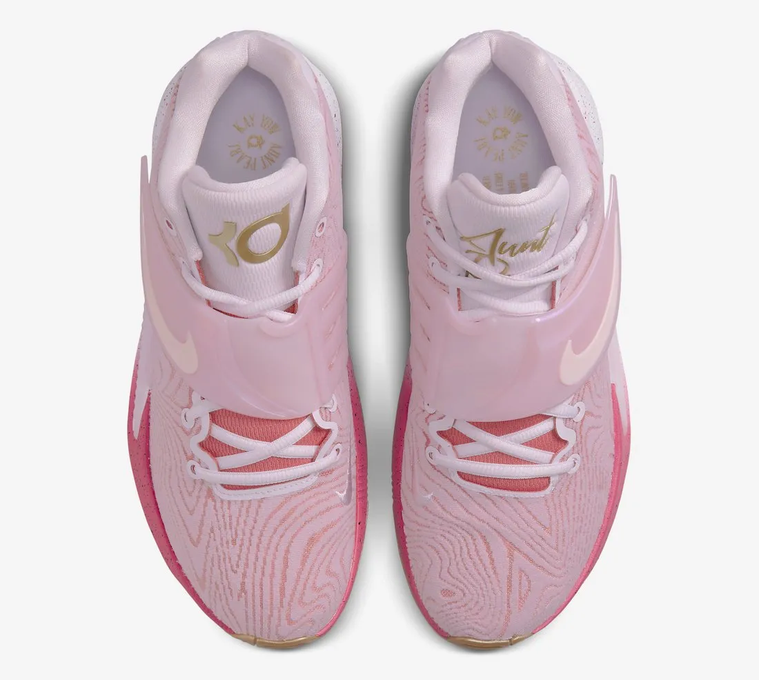 Comme le veut la tradition, la KD 14 aura son coloris “Aunt Pearl”, une paire hommage à la tante décédée de Kevin Durant qui permet aussi de sensibiliser le grand public sur la question du cancer.