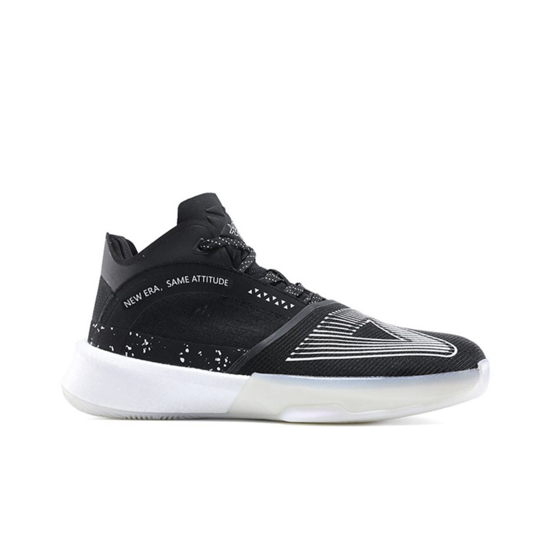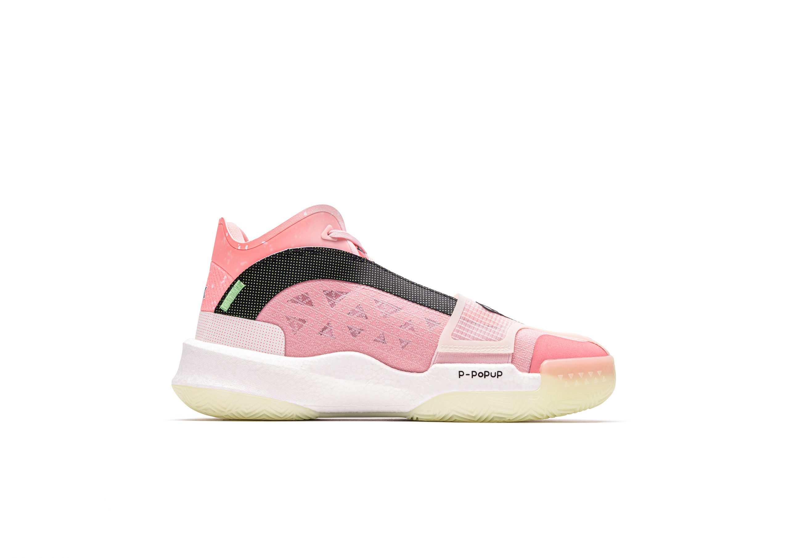 L’aspect technologie ressort également de la « Big Triangle », particulièrement au niveau de sa semelle, dotée d’une densité P-Popup, une plaque de carbone pour la stabilité, et la présence de la technologie Peak Taichi pour l’amorti. Le tout repose sur une semelle extérieure composée de matériaux anti-dérapants et anti-abrasifs, également sous forme triangulaire.