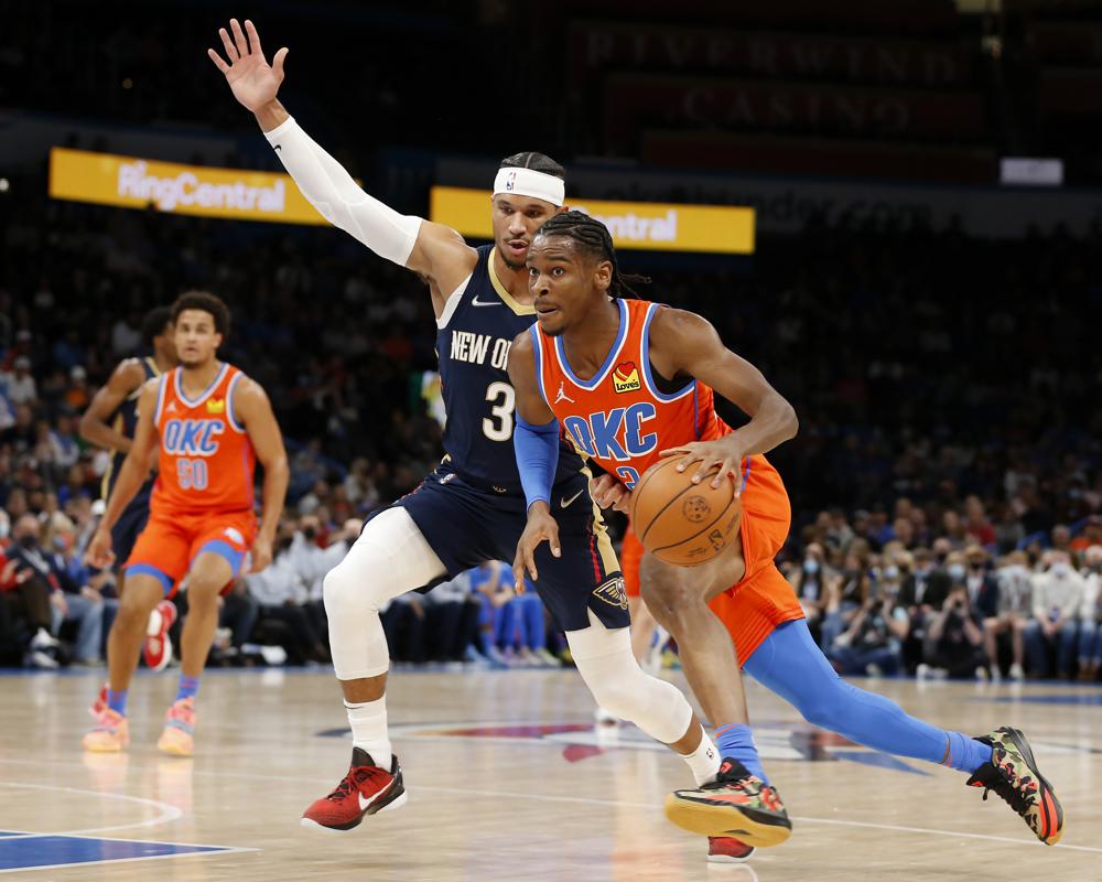 New Orleans est toujours aussi collant, et un 11-2 lui permet de prendre l’avantage. Shai Gilgeous-Alexander inscrit huit points dans le “money time”, dépassant ainsi James Harden au classement des meilleurs marqueurs de l’histoire de la franchise, et le Thunder s’impose finalement.