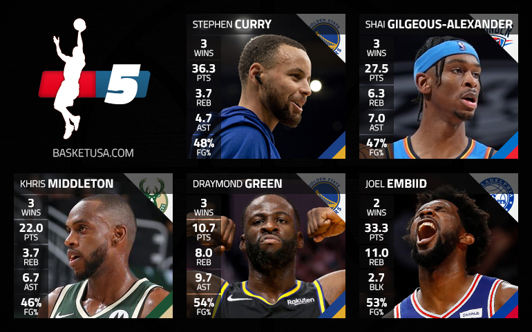 Sur les ailes, c’est plus compliqué car il y a énormément d’absents et on se rabat donc sur Khris Middleton, pas particulièrement étincelant mais toujours solide, avec ou sans Giannis Antetokounmpo, alors que Draymond Green l’accompagne, même si ses statistiques ne montrent pas vraiment l’influence qu’il a sur le jeu des Warriors.