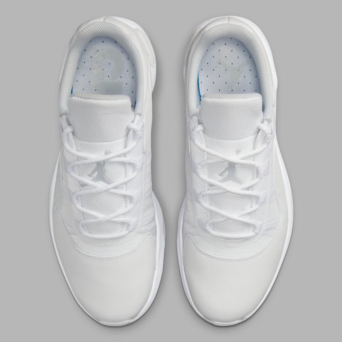 Le modèle fait la part belle à du gris clair et du blanc cassé notamment sur la partie en cuir et les matériaux synthétiques de la tige. Le « Cool Grey » apparaît très discrètement sur la semelle extérieure ainsi que sur le logo Jumpman au niveau de la cheville et de la languette.