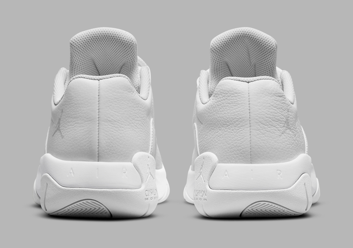 Le modèle fait la part belle à du gris clair et du blanc cassé notamment sur la partie en cuir et les matériaux synthétiques de la tige. Le « Cool Grey » apparaît très discrètement sur la semelle extérieure ainsi que sur le logo Jumpman au niveau de la cheville et de la languette.