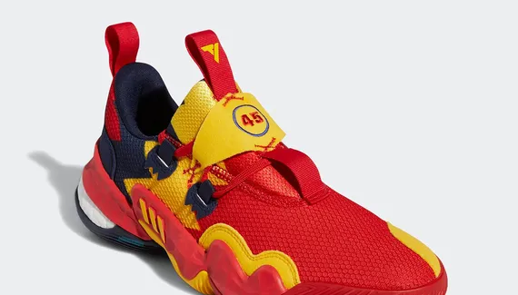 La Trae Young 1 va rendre hommage à cet événement en proposant un coloris majoritairement rouge et jaune contrasté par du bleu marine très foncé au niveau de la cheville et des accroches des lacets.