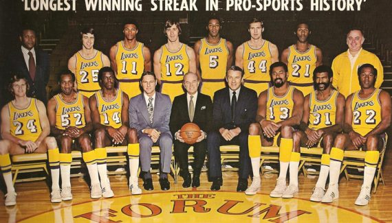 Car, lors de leurs 33 succès consécutifs, les hommes de Bill Sharman — qui termineront champions en 1972 pour la 6e fois de leur histoire, quelques mois seulement après la retraite d’Elgin Baylor — ont fait preuve d’une domination sans partage (16 points d’écart en moyenne), accumulant les victoires de plus de 10, 20, 30 et parfois 40 points d’écart (23 au total, sur les 33) ! Le tout dans le sillage de Wilt Chamberlain, meilleur rebondeur de la ligue, et de Jerry West, meilleur passeur de la ligue.