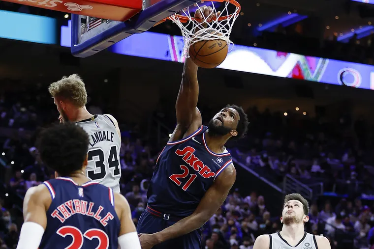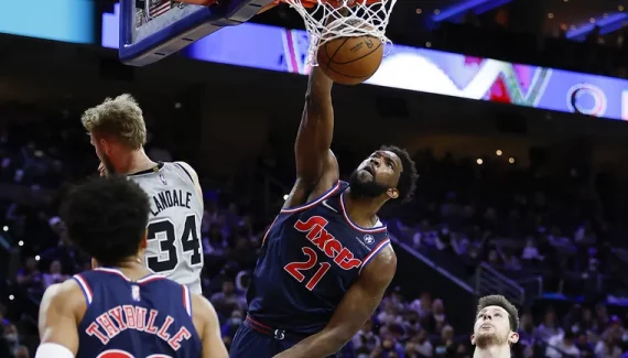 Sans faire de bruit, les Sixers ont retrouvé de leur superbe, et cette nuit, ils enchaînent avec une 6e victoire de suite face à des Spurs très diminués (119-100). Un point commun à ces six succès de rang : Joel Embiid a survolé la rencontre ! Cette nuit, il a encore dominé de la tête et des épaules le début de match, et après deux minutes, Jakob Poeltl a déjà rejoint son banc avec deux fautes, pris au piège de simples feintes.