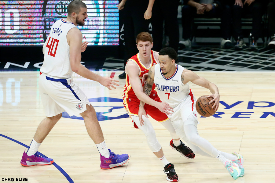Malgré une entame de match au ralenti (2/10 aux tirs), une tradition pour un match du dimanche soir, les Clippers sont dans le coup dans le premier quart-temps. En l’absence de Paul George, et évidemment de Kawhi Leonard, c’est par un effort collectif que les “role players” de Ty Lue font front et c’est l’inattendu Amir Coffey (10 points, 4/4 aux tirs) qui sort du lot. Malgré 9 points de Bogdan Bogdanovic, les Hawks pataugent en attaque (9/22) et accusent un premier retard après 12 minutes (31-23).