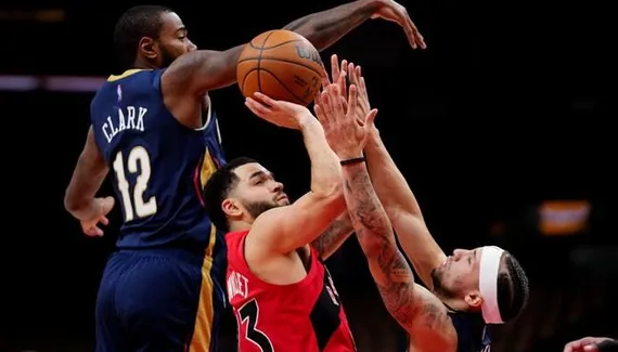 Derrière, Brandon Ingram réduit l'écart près du cercle, mais Chris Boucher domine la fin de match au rebond, et c'est lui qui réussit la claquette décisive (104-101). Les Pelicans ne verrouillent pas le rebond, et Fred VanVleet puis Khem Birch arrachent des rebonds offensifs. Faute sur le pivot canadien qui met un lancer sur deux (105-101). Graham manque son dernier shoot à 3-points, et Toronto arrache sa 6e victoire de rang.