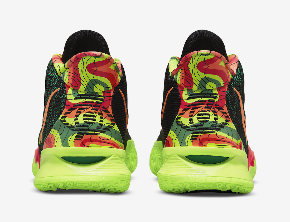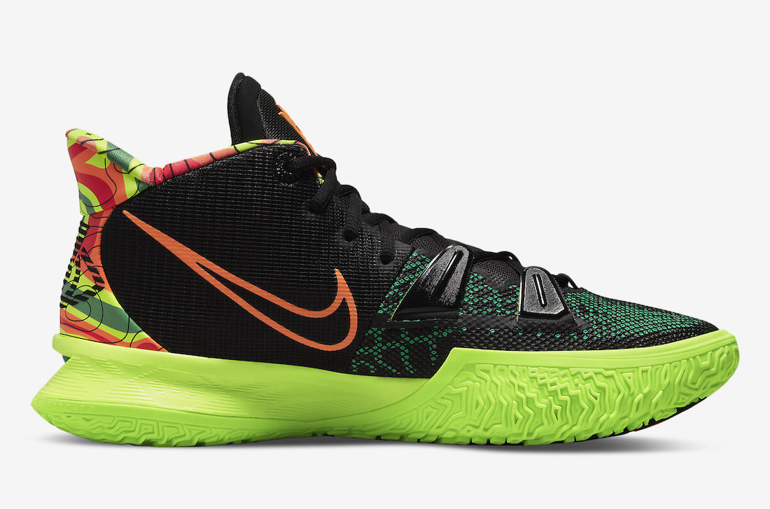 La Kyrie 7 d’inspiration thermique se voit dotée d’une nouvelle vie. Alors que la campagne pour accompagner la sortie de la Kyrie 8 bat son plein, Nike a ressorti une Kyrie 7 Weatherman « alternate », disponible sur le territoire américain depuis vendredi dernier au prix de 140 dollars.