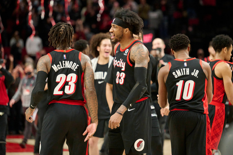 En l’absence de leurs joueurs majeurs, les Blazers continuent tant bien que mal à croire en leurs rêves de playoffs. Cette nuit, ils ont dû faire sans quatre titulaires (Damian Lillard, CJ McCollum, Norman Powell et Larry Nance Jr) pour repousser des Nets qui évoluaient avec Kyrie Irving mais sans James Harden (genou).