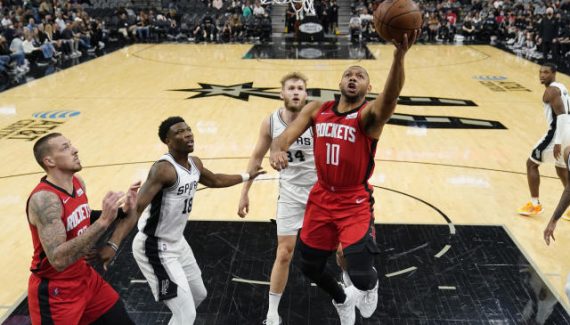 Même après avoir mené de 12 points en dernier quart, Houston a effectivement dû batailler jusqu’au bout alors que Dejounte Murray enchaînait les 3-points miraculeux pour s’accrocher à un ultime espoir. Mais Kevin Porter Jr. et les Rockets ont fini par s’imposer (128-124) au terme d’un bon “shootout” à la texane.