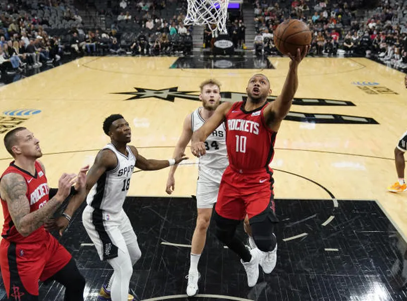 Même après avoir mené de 12 points en dernier quart, Houston a effectivement dû batailler jusqu'au bout alors que Dejounte Murray enchaînait les 3-points miraculeux pour s'accrocher à un ultime espoir. Mais Kevin Porter Jr. et les Rockets ont fini par s'imposer (128-124) au terme d'un bon “shootout” à la texane.