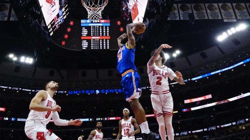 Face à des Warriors privés de Draymond Green, Klay Thompson et Gary Payton II, les Bulls ont pris l’eau en première mi-temps et ont perdu Zach LaVine sur une blessure au genou gauche. En délicatesse avec son attaque depuis plusieurs semaines, Golden State a terminé la rencontre avec 38 passes décisives, pour seulement 7 ballons perdus, et 44% d’adresse à 3-points.