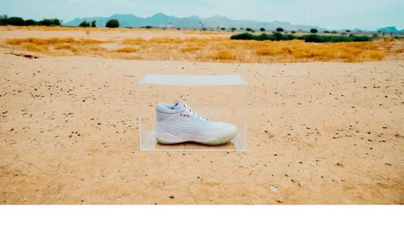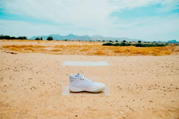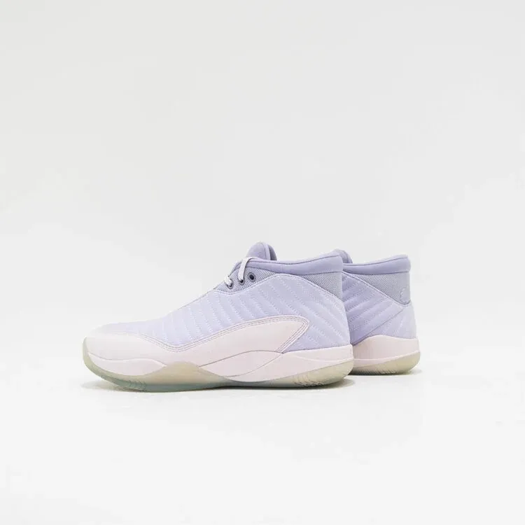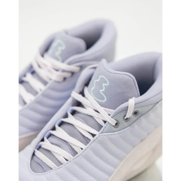 Le modèle allie une tige majoritairement en daim ainsi qu'un col et une languette en mesh, l'esnemble reposant sur une semelle intermédiaire en mousse blanche et une semelle extérieure translucide à motifs. Le coloris « Lilas » a été choisi pour cette première version.