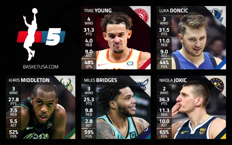 Enfin, sous le cercle, le débat hebdomadaire est de savoir qui de Nikola Jokic ou de Joel Embiid sera présent, les deux pivots étant tous deux particulièrement impressionnants ? Avantage au Serbe cette semaine.
