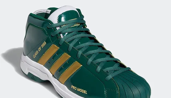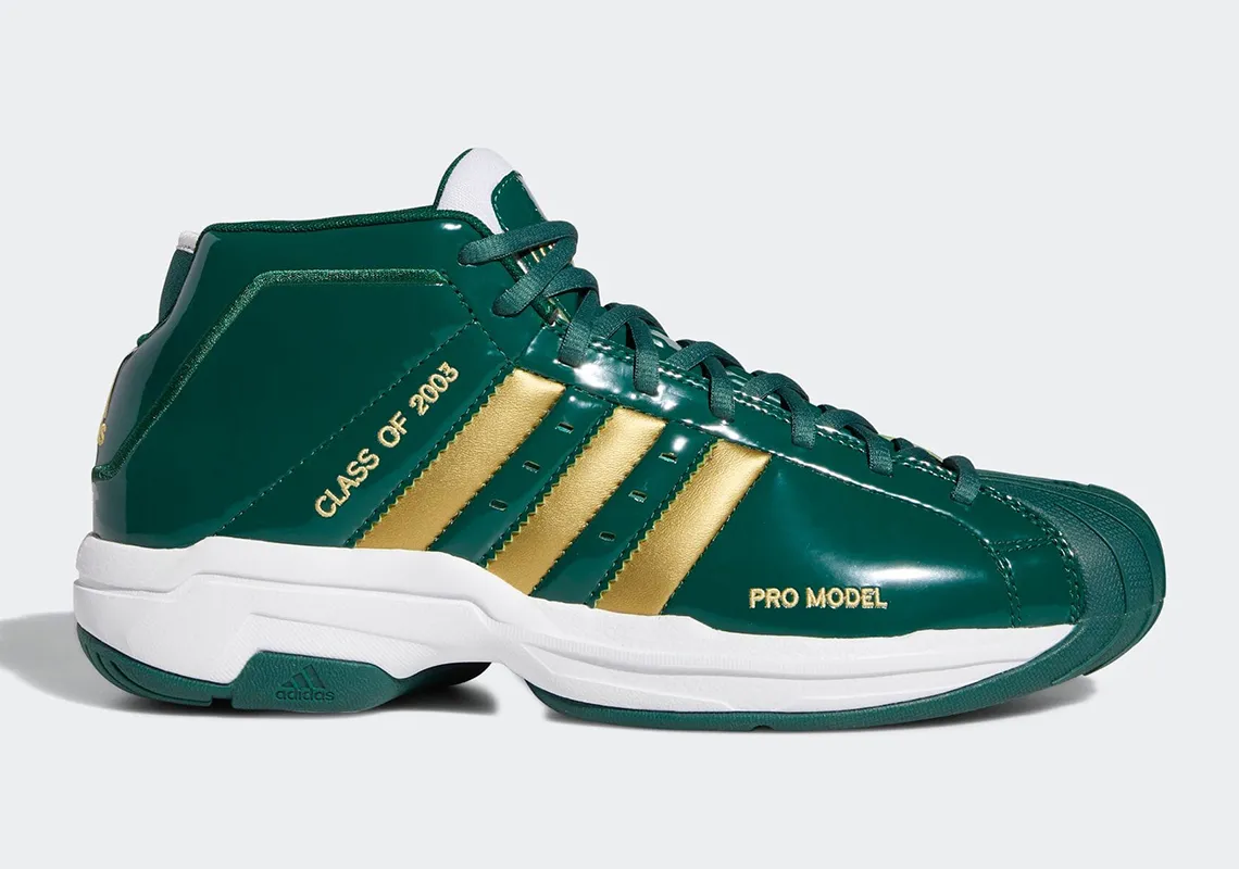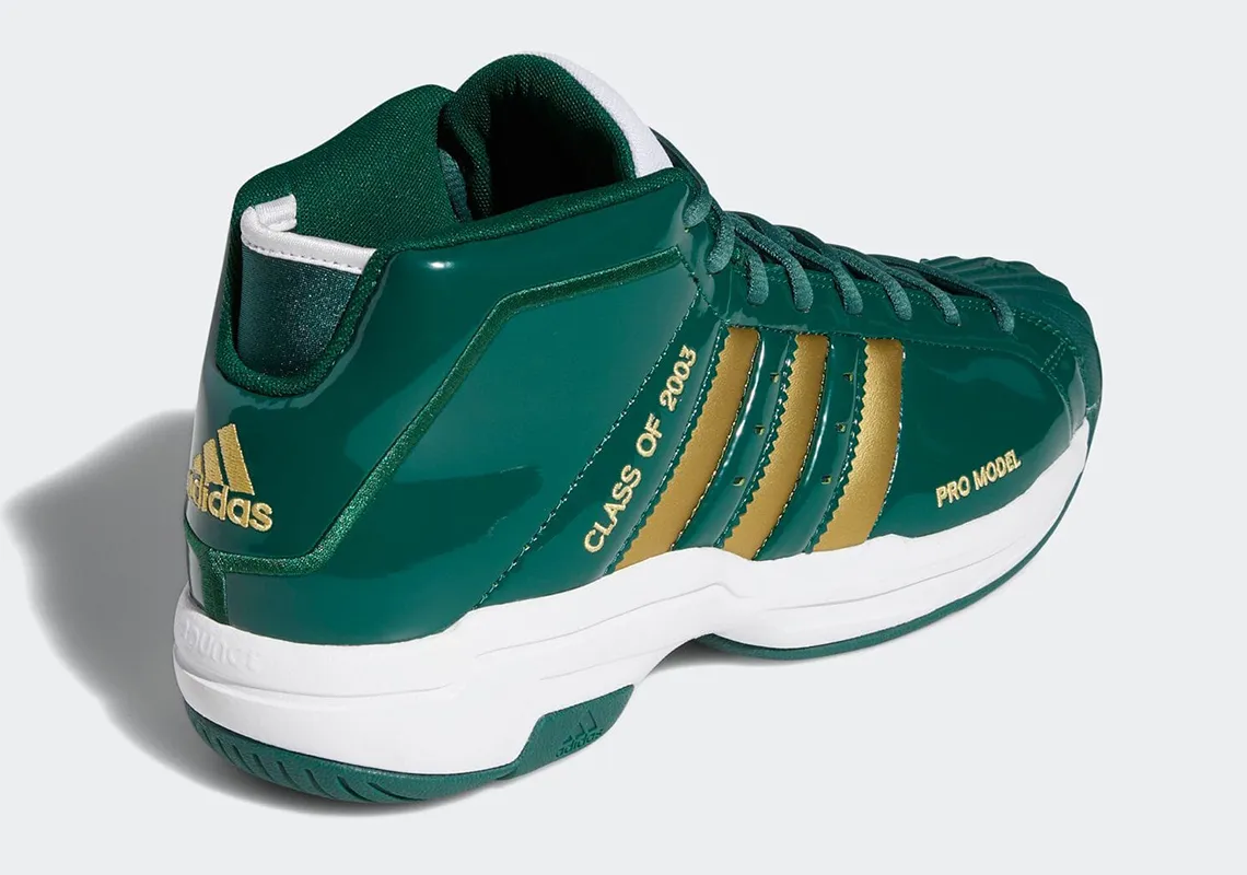 Un choix qu'adidas a récemment honoré en ressortant les fameuses T-Mac 2. Cette fois, c'est un nouveau modèle inspiré de cette époque qui s'apprête à être commercialisé : la Pro Model 2G au coloris « SVSM », qui reprend également le vert et or.