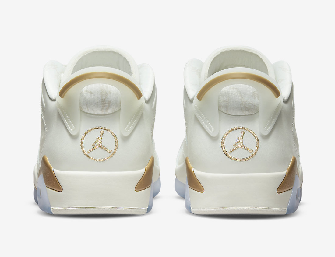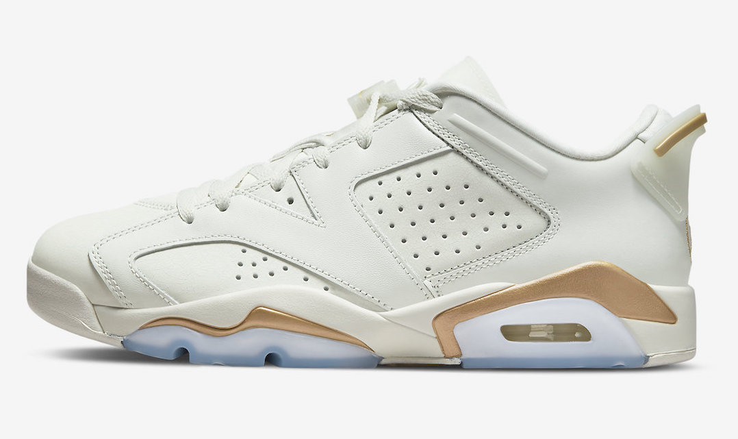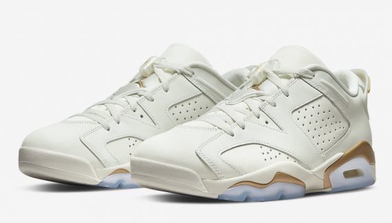Cette année, c’est une nouvelle version Low mais de la Air Jordan 6 qui va investir le marché. Le modèle est habillé d’une tige en blanc cassé rehaussé par des touches dorées sur la semelle intermédiaire, et les logos « Jumpman » présents sur la languette, le talon et sous la semelle. L’ensemble repose sur une semelle translucide glacée.