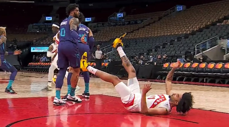 Lors de la rencontre entre les Raptors et les Hornets, PJ Washington et Justin Champagnie ont rejoint les vestiaires avant même la fin du 1er quart-temps. Comme on peut le voir sur les images, le joueur des Raptors a voulu se faire justice lui-même en bousculant Washington sous le cercle. L’intérieur de Charlotte n’a évidemment pas apprécié, et les deux en sont venus aux mains.