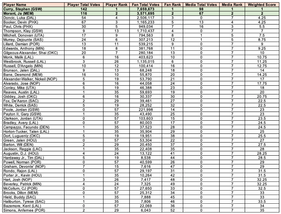 Le Canadien a toutefois profité de circonstances favorables, avec un “frontcourt” déplumé sur les ailes à l’Ouest suite aux blessures de Kawhi Leonard puis de Paul George en cours de saison du côté des Clippers notamment. D’ailleurs, il ne termine qu’à la 5e place des votes sur le “frontcourt” de l’Ouest chez les joueurs, derrière LeBron James, Nikola Jokic, Draymond Green et Rudy Gobert. Il est même 6e chez les journalistes, derrière LeBron James, Nikola Jokic, Rudy Gobert, Draymond Green mais également Karl-Anthony Towns.