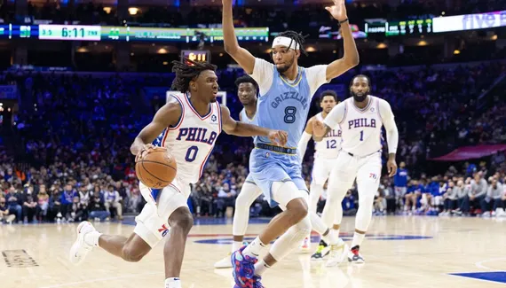 Auteur des quatre derniers points du match pour permettre aux Sixers d'arracher la victoire face à Memphis, Tyrese Maxey a signé cette nuit l'un de ses meilleurs matches en carrière avec 33 points, 8 passes et carrément 4 contres. Joel Embiid absent, il était la première option en attaque, et il a joué les yeux dans les yeux avec Ja Morant.