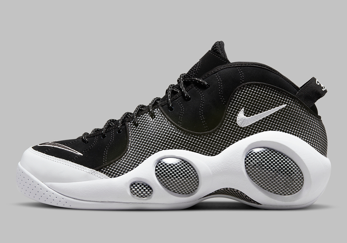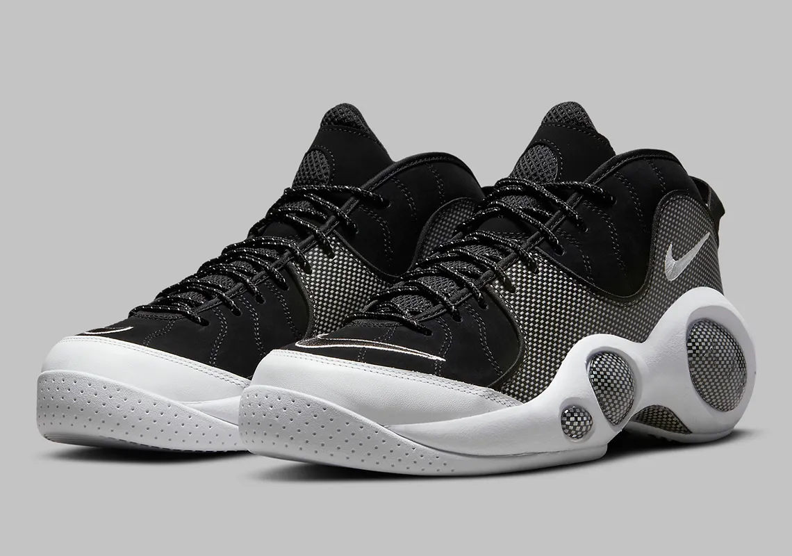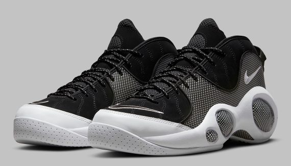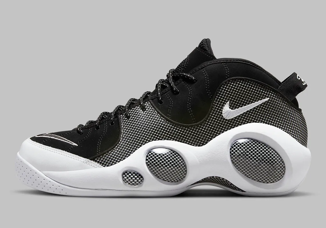 Au milieu des années 90, Jason Kidd était l'archétype du meneur de jeu du futur et sa Nike Zoom Flight 95 avec. Près de trente ans plus tard, le modèle, régulièrement ressorti des cartons, refait surface avec un coloris noir et blanc, à motifs quadrillés sur l'empeigne, les lacets et les grosses bulles ornant la semelle.
