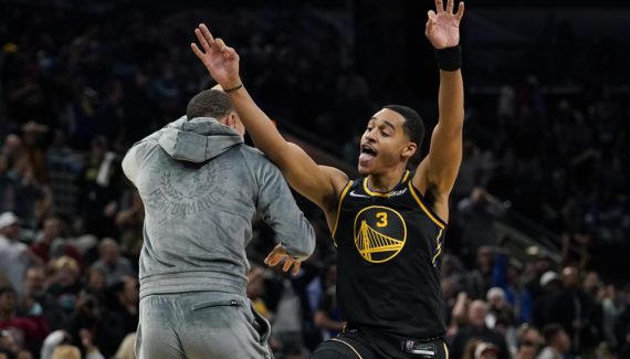 Cela s’illustre sur le panier primé de Jordan Poole à 17 secondes de la fin, pour prendre deux points d’avance. L’arrière va terminer son retour vers son banc en célébrant son shoot, sourire aux lèvres, avec Stephen Curry.
