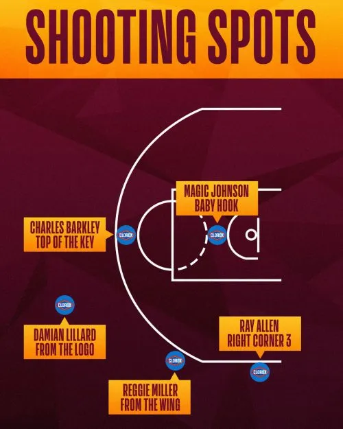 Pour fêter le 75e anniversaire de la ligue, le principe de cette compétition consistera à reproduire cinq actions iconiques de Magic Johnson, Charles Barkley, Reggie Miller, Ray Allen et Damian Lillard, toutes situées à cinq endroits différents du parquet. Chaque équipe disposera de 90 secondes pour convertir ces cinq shoots de légende, qu'importe l'ordre, du moment qu'ils sont réussis et qu'un joueur ne shoote pas deux fois de suite.