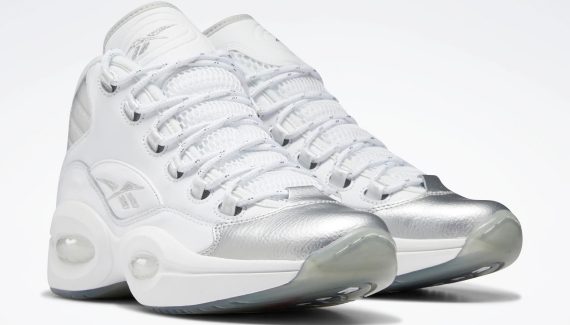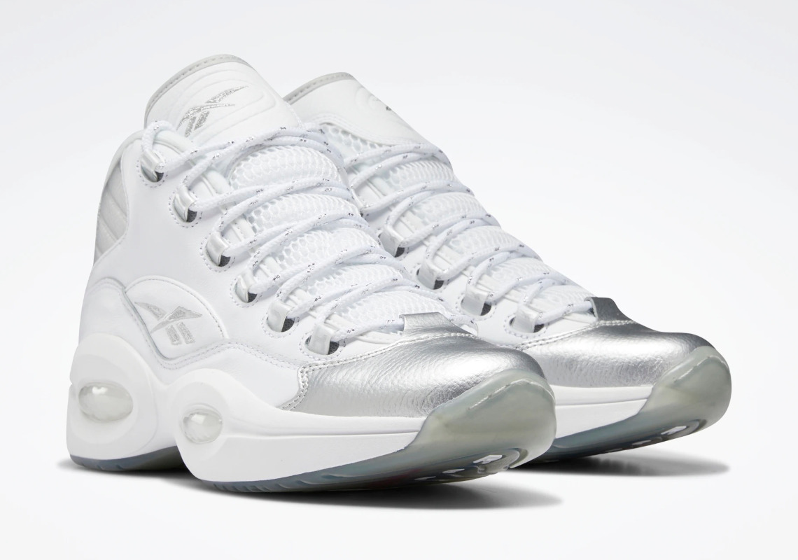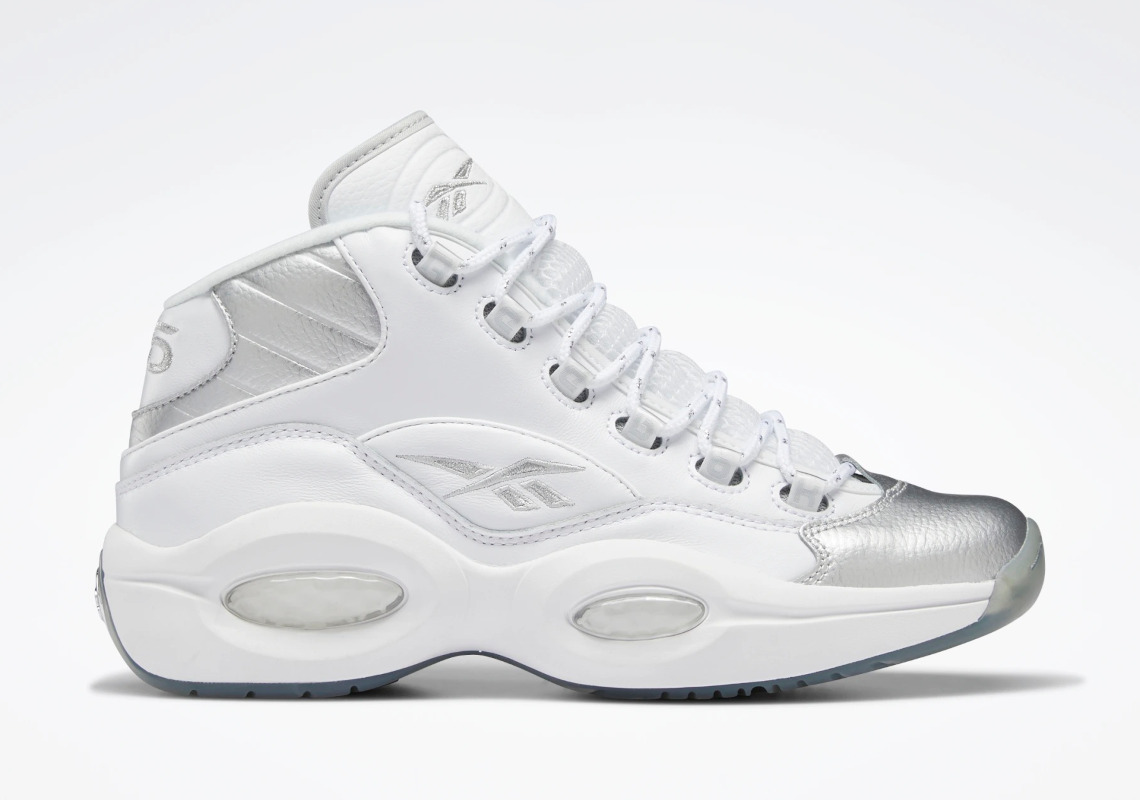 Sur une tige blanche, les parties en argent se trouvent sur l’avant de la chaussure en daim, les logos Reebok et 25 sur l’empeigne, la languette et le talon ainsi que sur une bande au niveau de la cheville. Le numéro 3 d’Allen Iverson ressort également en argenté au niveau du talon sur la semelle extérieure glacée.