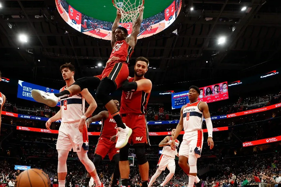 Avec une grosse adresse à 3-points (18/32, 56%), le Heat a passé une soirée des plus tranquilles à Washington. Une large victoire (121-100) construite en deux temps, et c'est Duncan Robinson qui a placé ses coéquipiers sur les bons rails. Deux bombes à 3-points de suite, et Miami mène déjà 10-2 après deux minutes. Jimmy Butler attaque le cercle en permanence, et les 3-points continuent de tomber avec Robinson toujours, mais aussi Gabe Vincent par deux fois. Après douze minutes, les Wizards sont déjà relégués à 15 points (39-24).