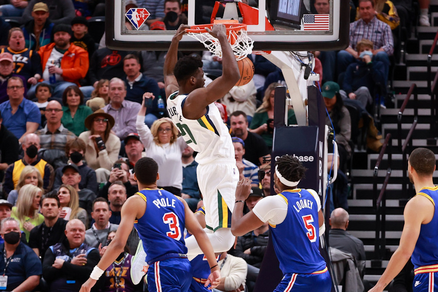– La taille du Jazz punit les Warriors. Malgré l’absence de Rudy Gobert, toujours blessé, le Jazz a dicté sa loi près du cercle des deux côtés du terrain grâce à l’impact d’Udoka Azubuike et d’Hassan Whiteside. Ce dernier comptait 6 contres en sortie de banc à la mi-temps, alors que la présence des deux pivots a limité Golden State à 20 points dans la raquette, à seulement 10 sur 23 aux tirs, contre 48 points au Jazz ! Utah a également terminé la rencontre avec un avantage de +17 aux rebonds. C’est dans ce genre de match que l’absence de Draymond Green, de part son activité et intensité, mais aussi de James Wiseman, manque cruellement aux Warriors.
