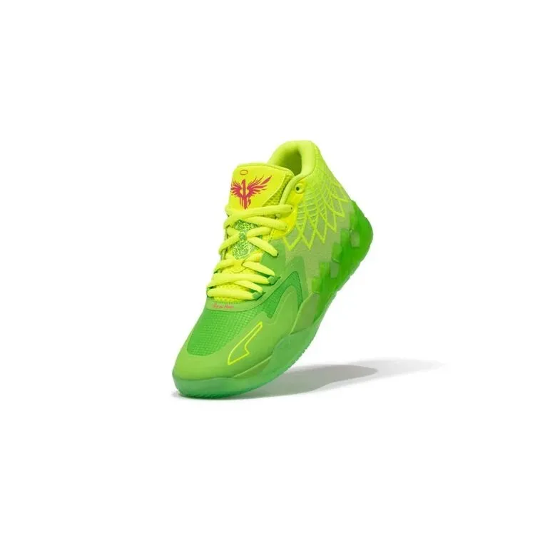 Le ton est donné dès la réception de la boîte contenant la toute première chaussure signature de LaMelo Ball, la MB.01, visiblement tout droit venue de l'espace. Une fois les chaussures en main, les inscriptions « Rare » en gros sous la semelle et « Not from here » juste sous les lacets, confirment qu'on tient bel et bien là un modèle hors du temps, conçu par un joueur étonnant, en collaboration avec Puma.