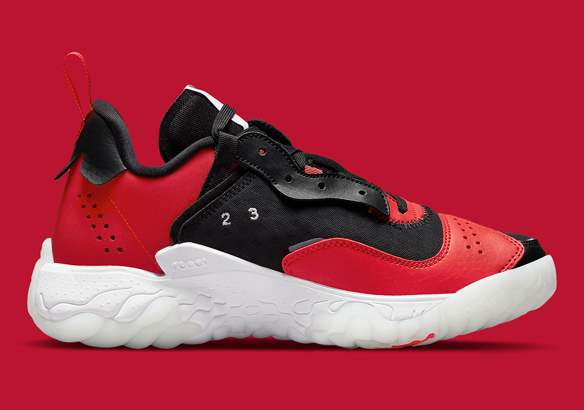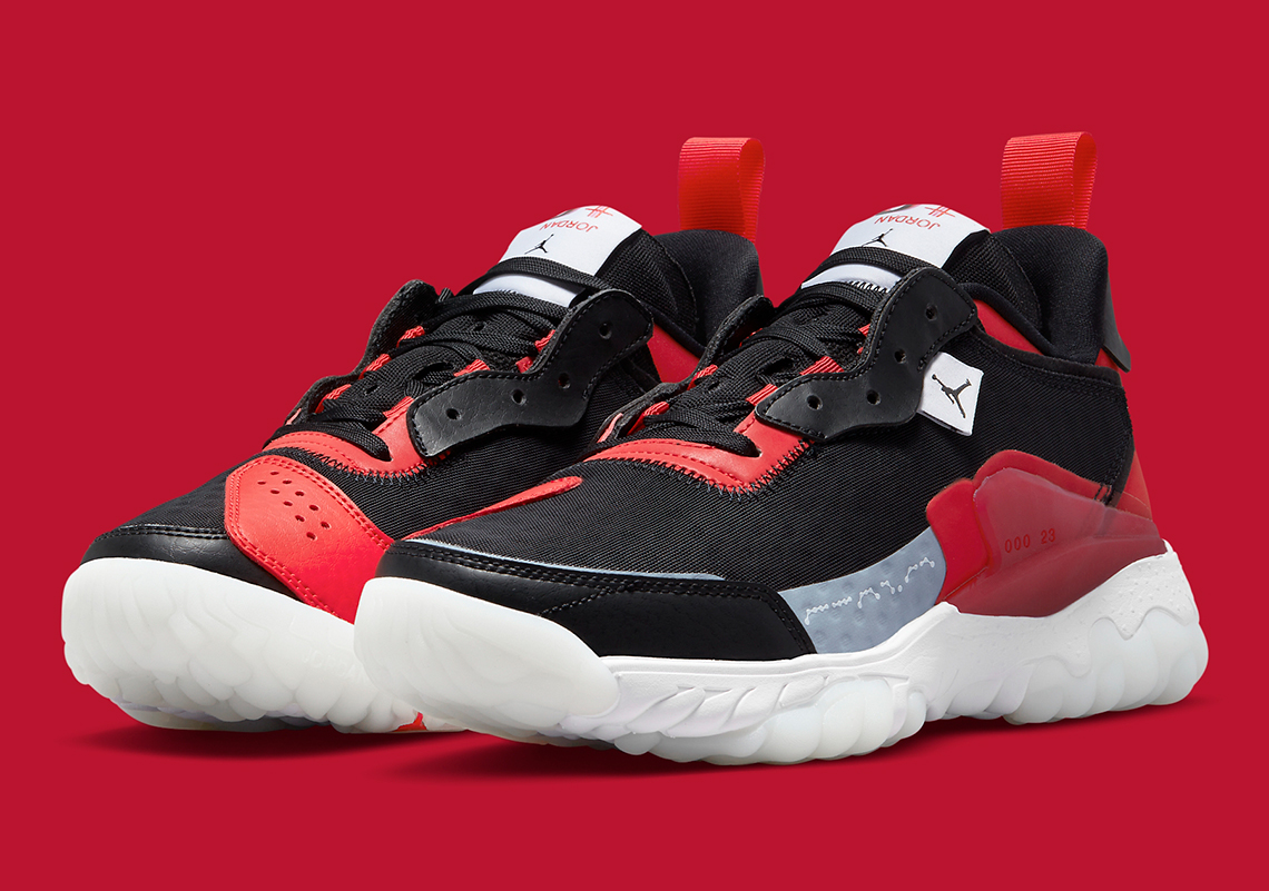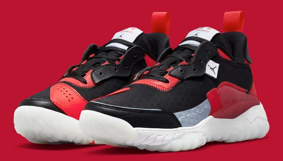 Retour aux fondamentaux pour la Jordan Delta 2 qui rend hommage au boss, Michael Jordan, avec ce coloris qui n’est pas sans rappeler l’uniforme des Bulls. La tige, parée de bandes en cuir et en synthétique, fait donc ressortir le rouge et le noir aux couleurs de la franchise de l’Illinois.