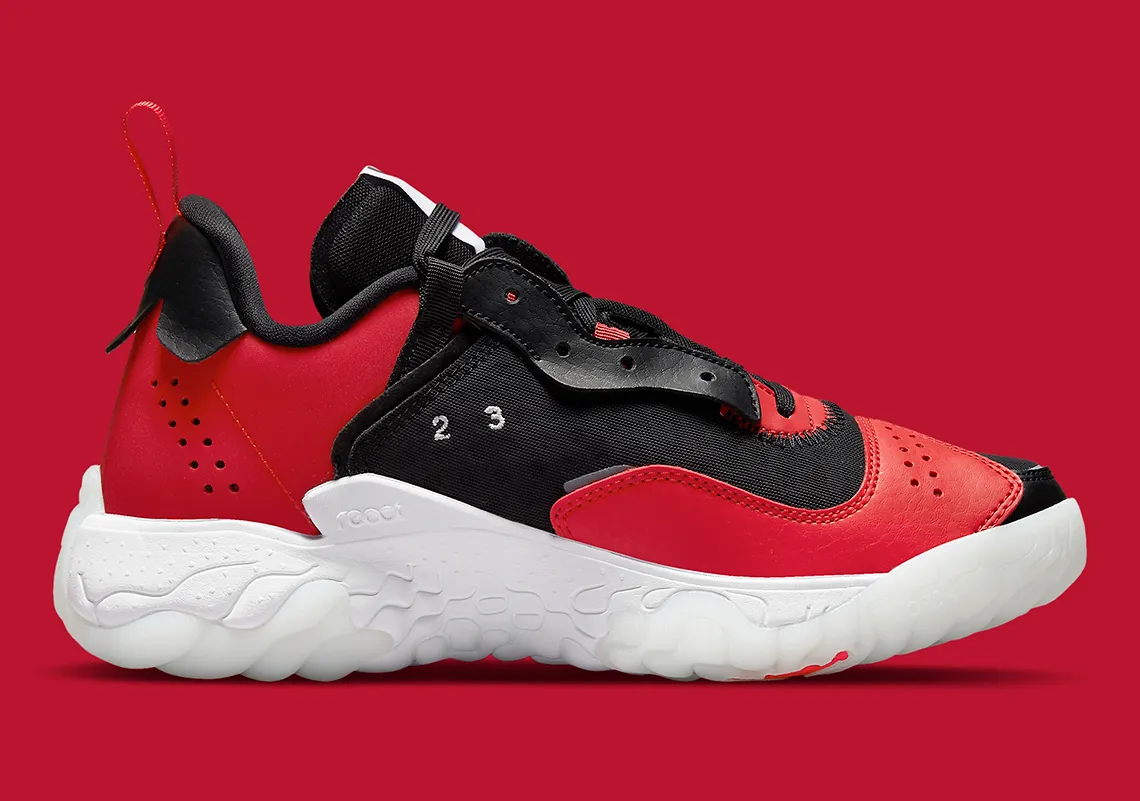 Retour aux fondamentaux pour la Jordan Delta 2 qui rend hommage au boss, Michael Jordan, avec ce coloris qui n'est pas sans rappeler l'uniforme des Bulls. La tige, parée de bandes en cuir et en synthétique, fait donc ressortir le rouge et le noir aux couleurs de la franchise de l'Illinois.