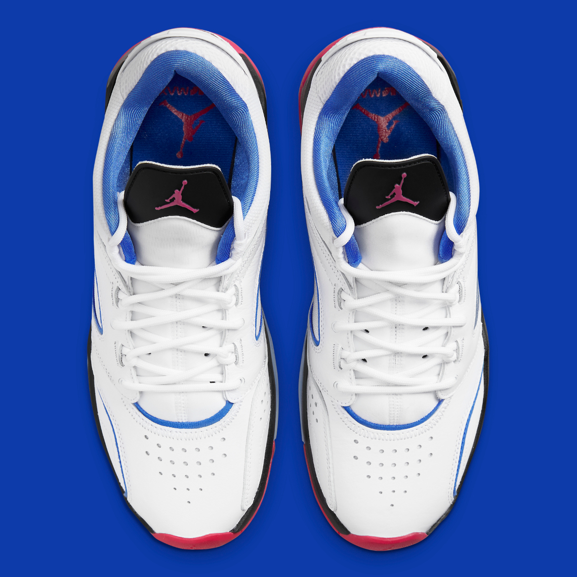 Inspiré de plusieurs modèles de Jordan, dont la Air Jordan 6, cette Jordan Point Lane dispose d’une tige majoritairement blanche, dotée de finition en bleu marine, au même titre que l’intérieur du col.