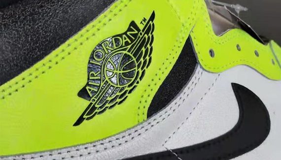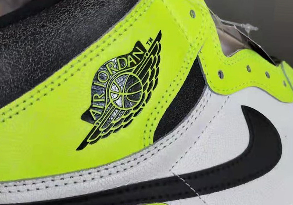 Habillée sur le même principe que la Air Jordan 1 “Chicago”, la tige troque cette fois le rouge contre ce vert éclatant appelé « Volt », l’ensemble étant accompagné de blanc et de noir, comme au niveau de la semelle.