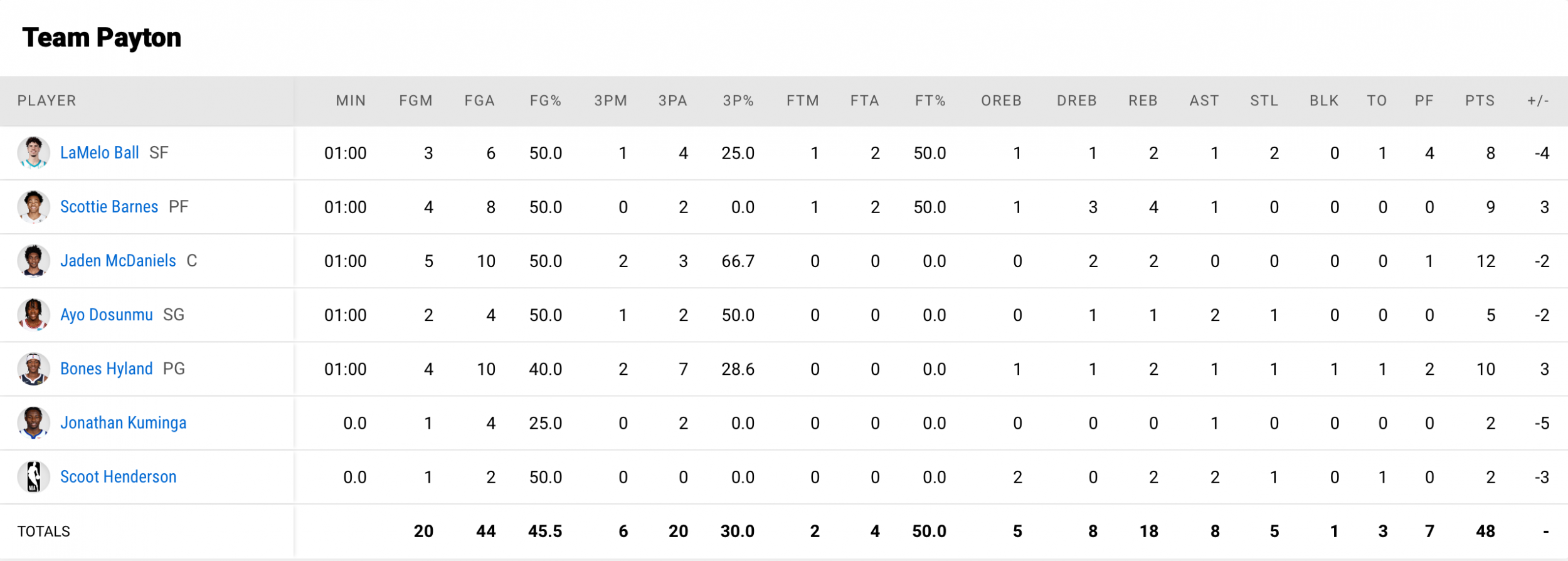 — Team Gary Payton : LaMelo Ball, Bones Hyland, Ayo Dosunmu, Scoot Henderson, Jonathan Kuminga, Scottie Barnes, Jaden McDaniels.