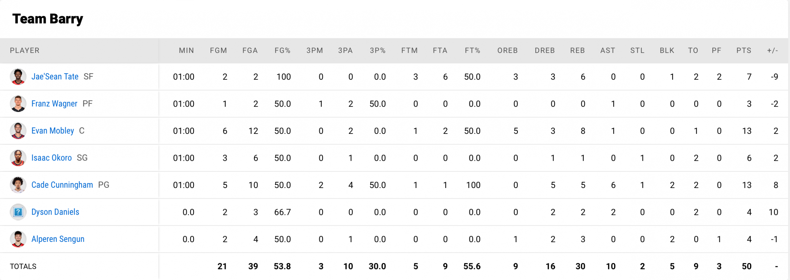 — Team Rick Barry : Cade Cunningham, Dyson Daniels, Isaac Okoro, Franz Wagner, Jae’Sean Tate, Evan Mobley, Alperen Sengun.