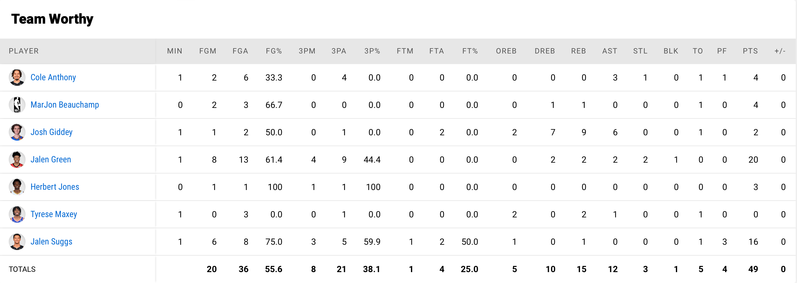 — Team James Worthy : Josh Giddey, Cole Anthony, Jalen Suggs, Tyrese Maxey, Jalen Green, MarJon Beauchamp, Herbert Jones.
