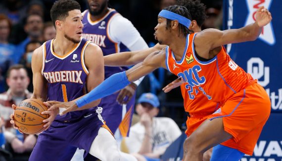 Face au Thunder de Shai Gilgeous-Alexander (32 points), Phoenix a fait respecter la logique du classement avec une 8e victoire de rang (124-104). Oklahoma City se sera bien accroché, étant encore au contact à cinq minutes de la fin, mais les Suns étaient plus forts, malgré un tout petit match de Deandre Ayton, cadenassé à l’intérieur.