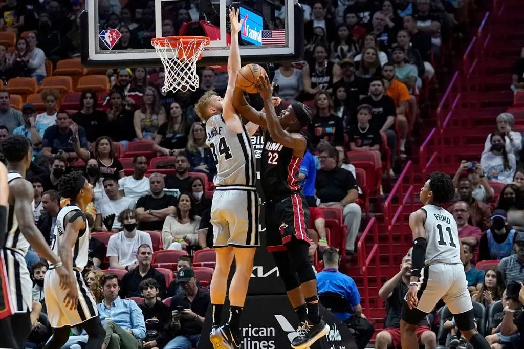 Après son match fou de la veille face aux Wizards, le staff des Spurs avait décidé de laisser au repos ses trois meilleurs joueurs : Dejounte Murray, Jakob Poetl et Keldon Johnson. Mais cela n’empêche pas les Spurs de réaliser un énorme premier acte. Porté par une réelle envie de se passer le ballon, San Antonio donne une leçon de basket aux Floridiens. Toujours en retard, Jimmy Butler et sa bande encaissent 40 points dans le premier acte (40-28).