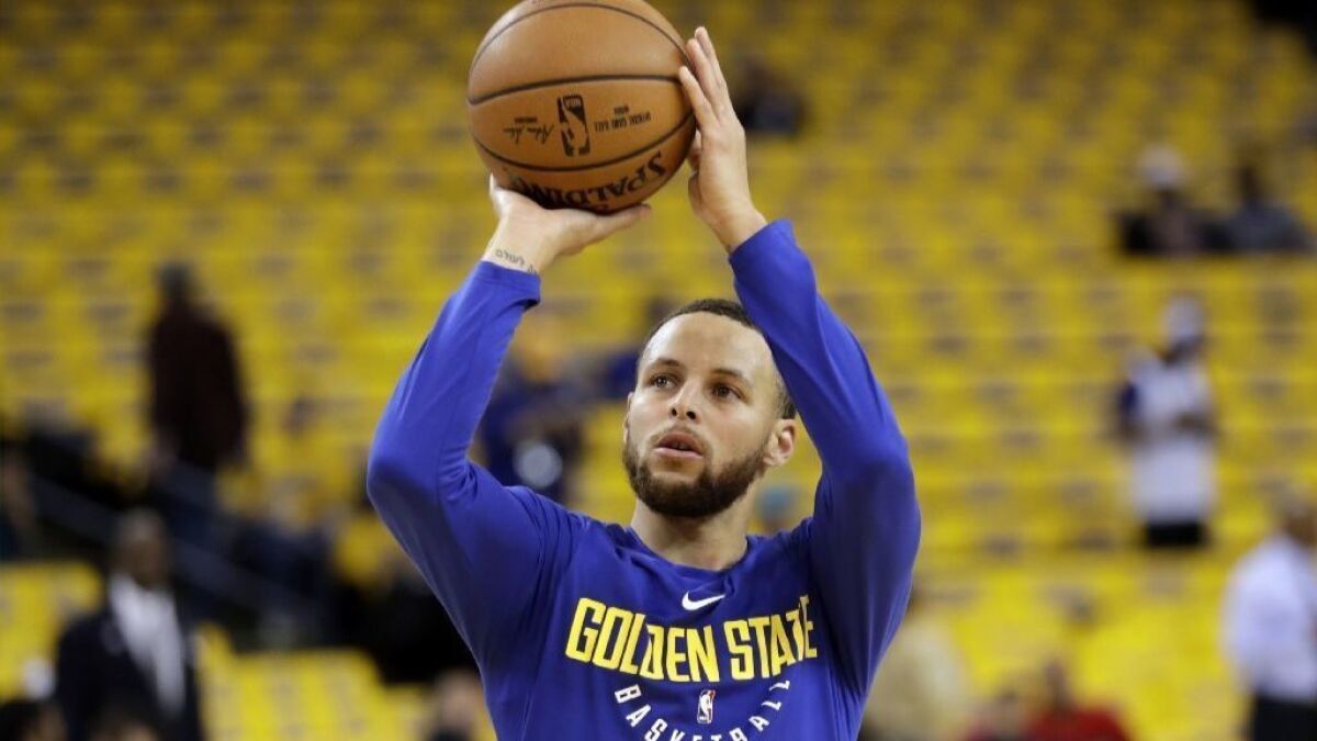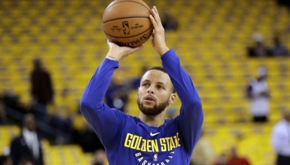 On est à l’échauffement, avant le match face aux Mavericks, et Stephen Curry se lance dans une série de shoots.