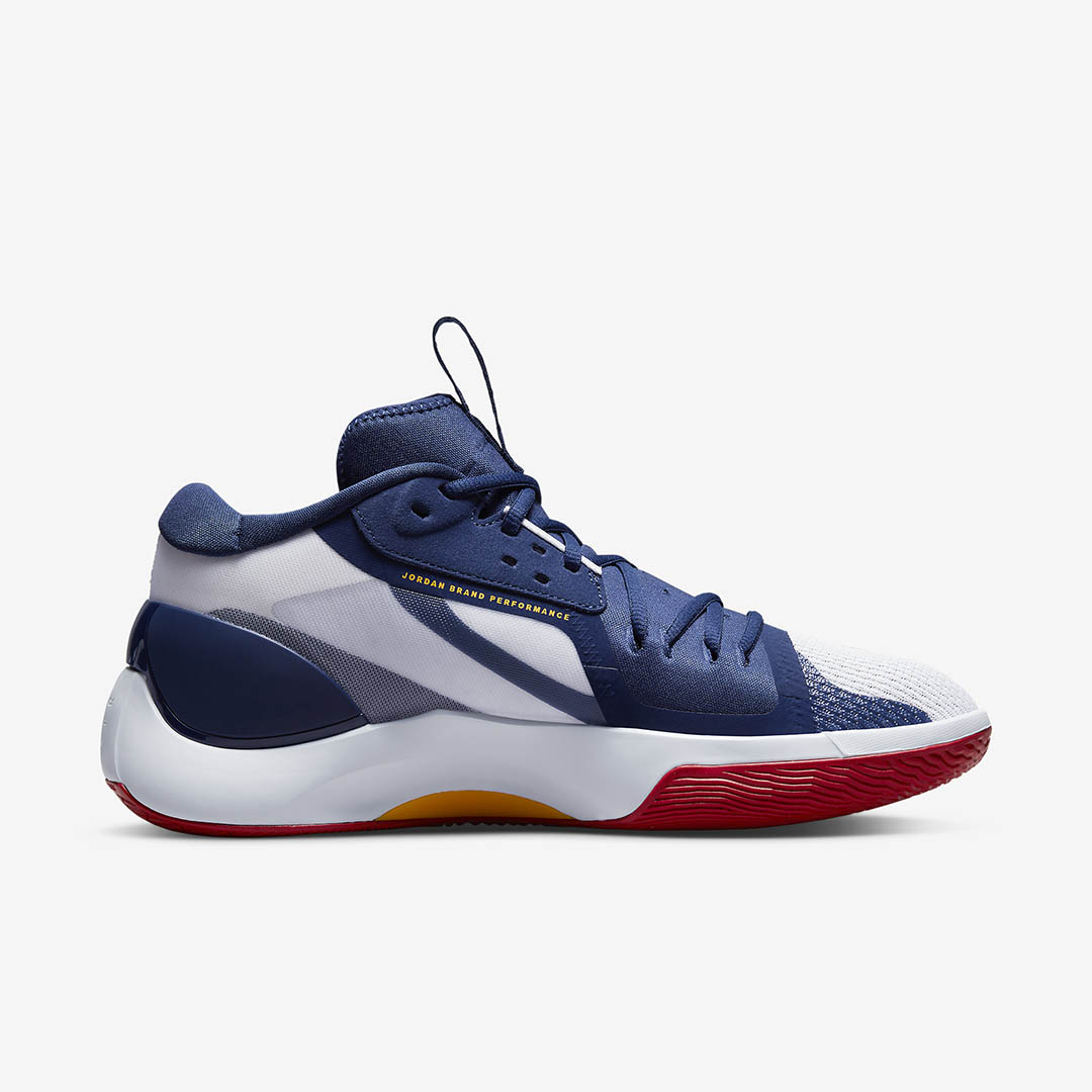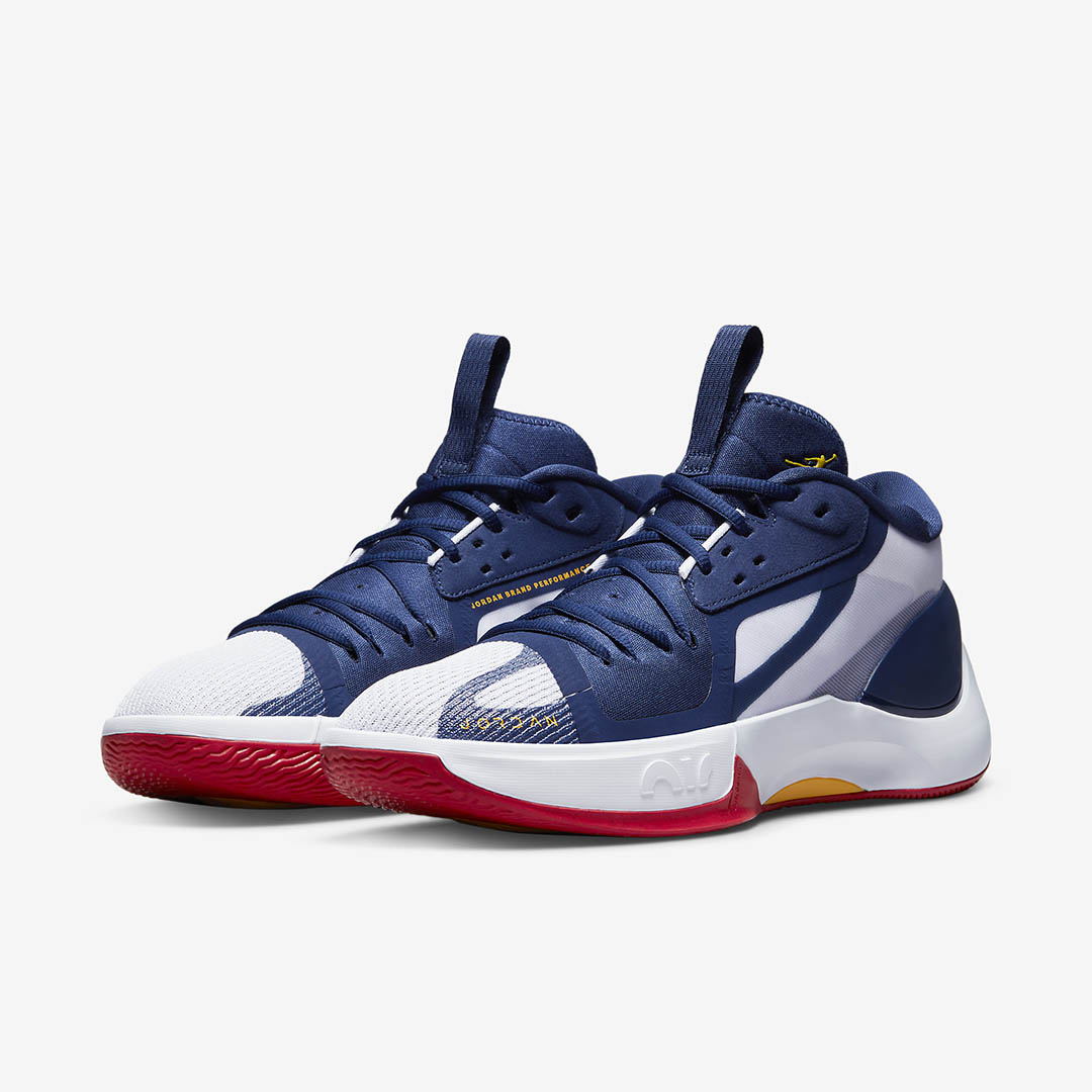 Alors que les soucis de production et d’approvisionnement consécutifs à la pandémie de Covid-19 ont particulièrement touché un modèle comme la Jordan Zoom Separate, pas encore commercialisée sur le territoire américain, « Jordan Brand » a cette fois pris un temps d’avance en se projetant sur la Coupe du Monde 2023 avec un coloris « Team USA ».