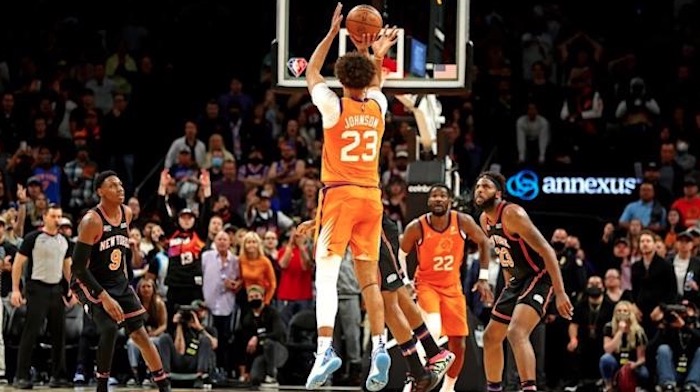Il fallait voir les mines décrépites d’Alec Burks ou Immanuel Quickley pour comprendre le sentiment des Knicks. Ces derniers, malgré un match solide jusqu’au bout, n’ont pas su résister à l’éruption inattendue de Cam Johnson, auteur d’un match aussi improbable que son tir de la gagne au buzzer. De quoi faire la joie chez Suns, privés de Chris Paul et Devin Booker (isolement Covid) cette nuit, et le malheur absolu des Knicks qui ont perdu un 7e match de suite (le 17e sur 20…).