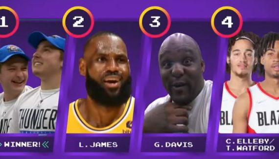 À voir aussi LeBron James qui se fait un tour de rein après une feinte d’Eric Gordon, ou encore cette bataille au rebond entre deux joueurs de Portland.