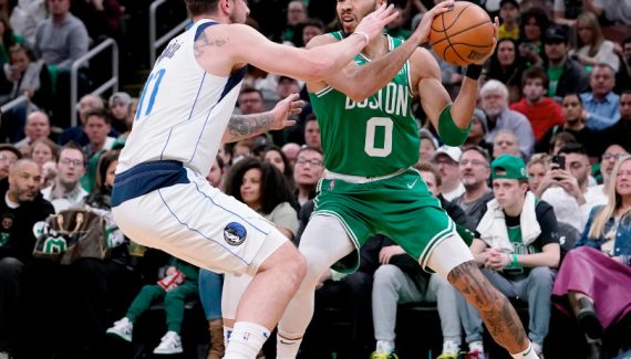 Le Slovène a signé son retour en replaçant les Mavs en tête (24-25), jusqu’à ce que Jaylen Brown ne réchauffe enfin l’atmosphère, d’un énorme tomar sur Maxi Kleber, le tout devant Kevin Garnett. Robert Williams III sous le panier puis Jayson Tatum à deux reprises ont alors offert 9 longueurs d’avance aux C’s (41-32), un écart qu’ils ont su conserver jusqu’à la pause, ponctuée d’un 3-points au buzzer signé Spencer Dinwiddie (47-38).