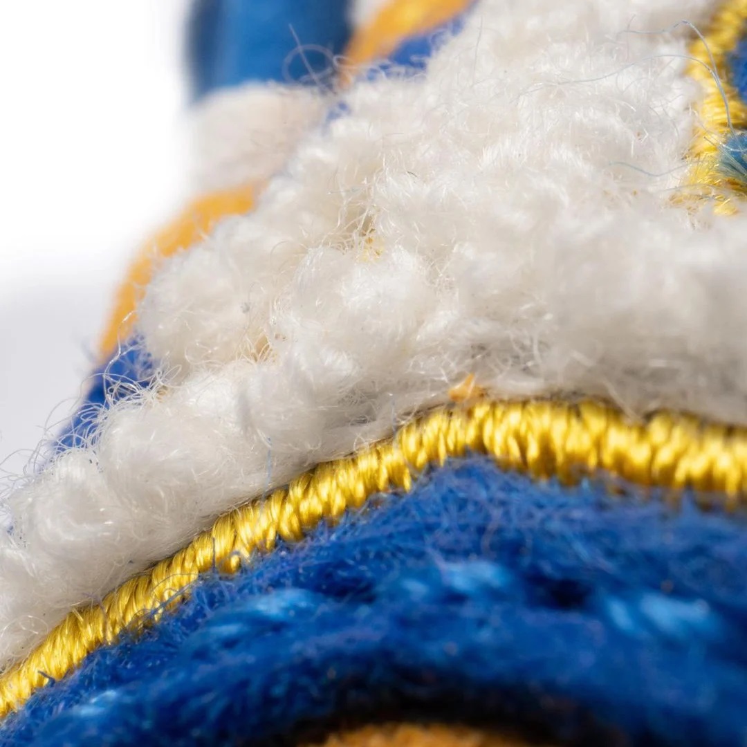 Prévu d’abord en « Player Exclusive », celui-ci arbore donc une tige majoritairement bleue, reposant sur une semelle jaune et blanche. Les lacets blancs sont recouverts d’une bande jaune sur laquelle les logos 23 et du « Jumpman » ressortent en blanc et bleu. Le logo d’UCLA apparaît pour sa part au niveau du talon.